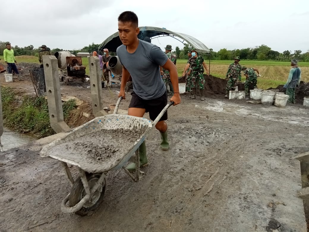 PATI – Dengan didasari rasa kegembiraan dan ikhlas hati dalam bekerja, anggota Satgas TMMD melaksanakan tugas yang telah dipercayakan. Serda Hendrik salah satu anggota satgas TMMD Reguler Ke-111 Kodim 0718/Pati yang bekerja di sektor betonisasi jalan