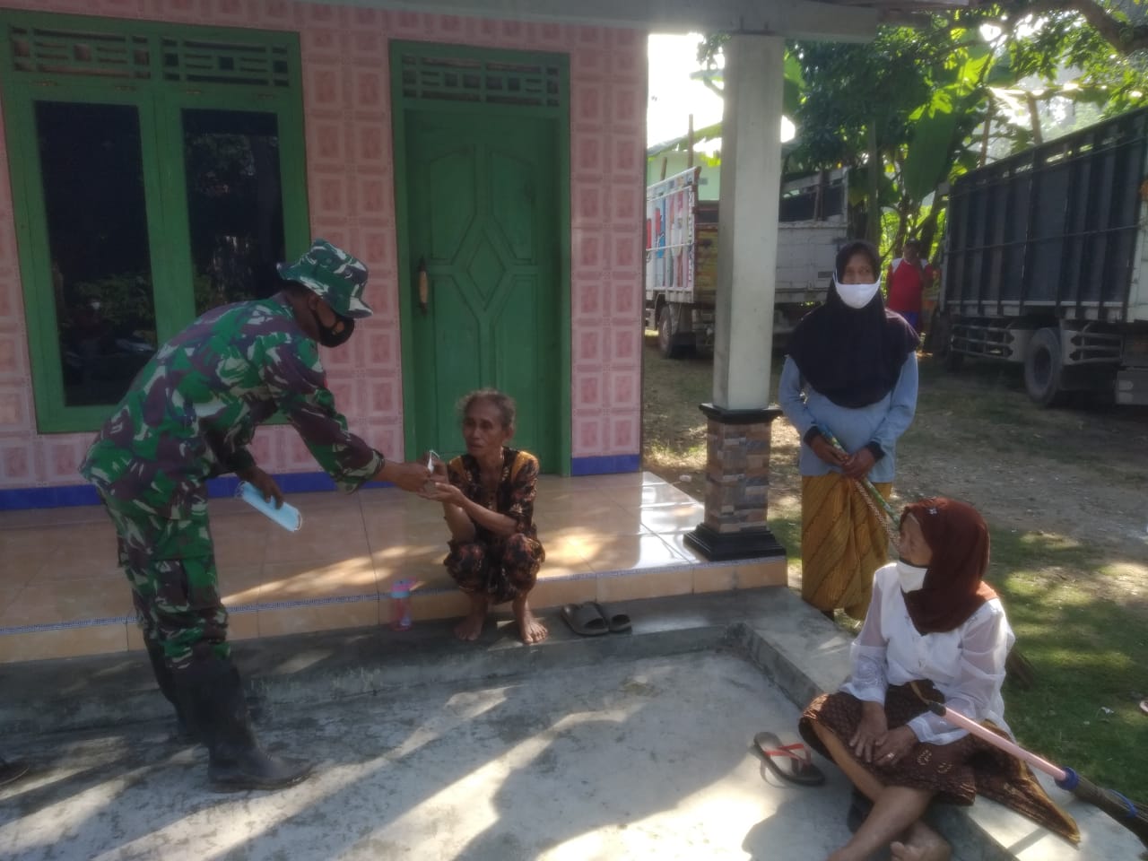PATI – Wujud kepedulian kesehatan masyarakat khususnya warga lanjut usia (lansia), Satgas TMMD Reguler Ke-111 Kodim 0718/Pati membagikan masker untuk lansia di Desa Tamansari, Kecamatan Jaken, Kabupaten Pati.