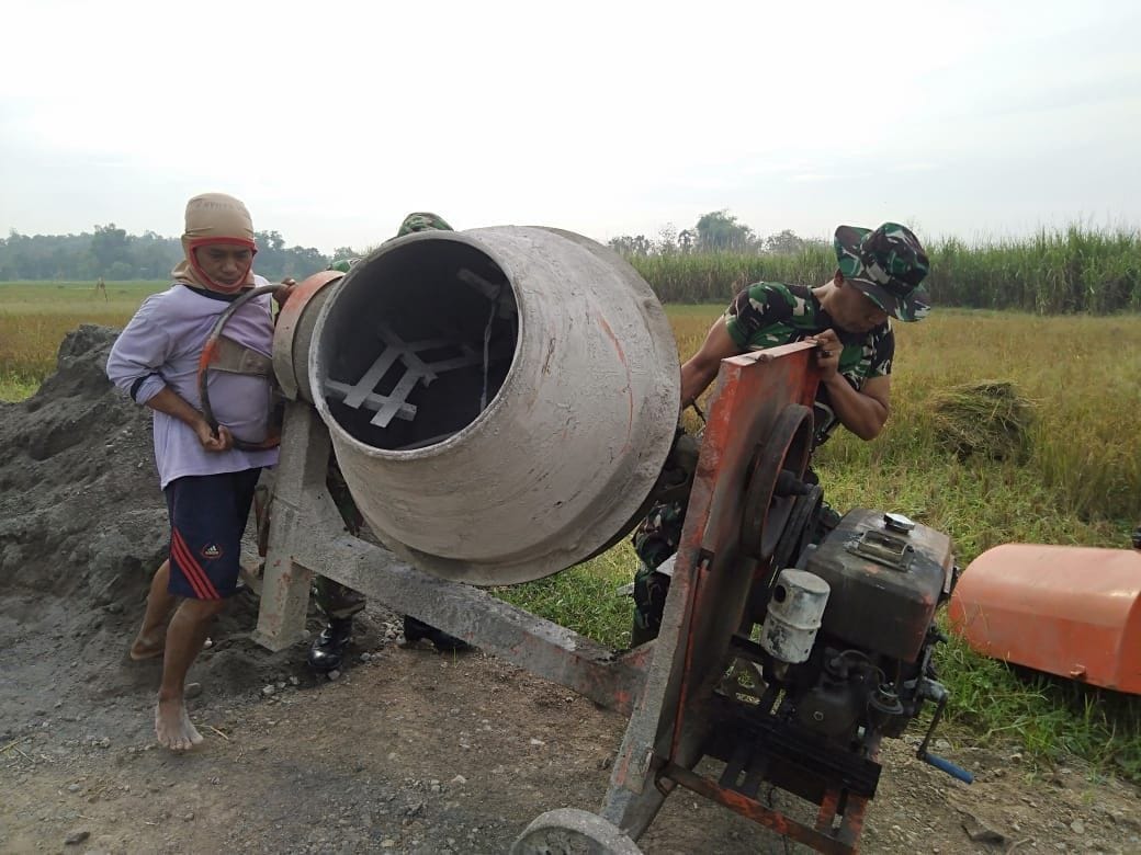 Pati – Layaknya seorang mekanik mesin diesel profesional, tidak membutuhkan waktu lama Koptu Sugianto berhasil menghidupkan mesin diesel yang digunakan untuk menggerakan molen pencampur adukan itu bisa hidup.