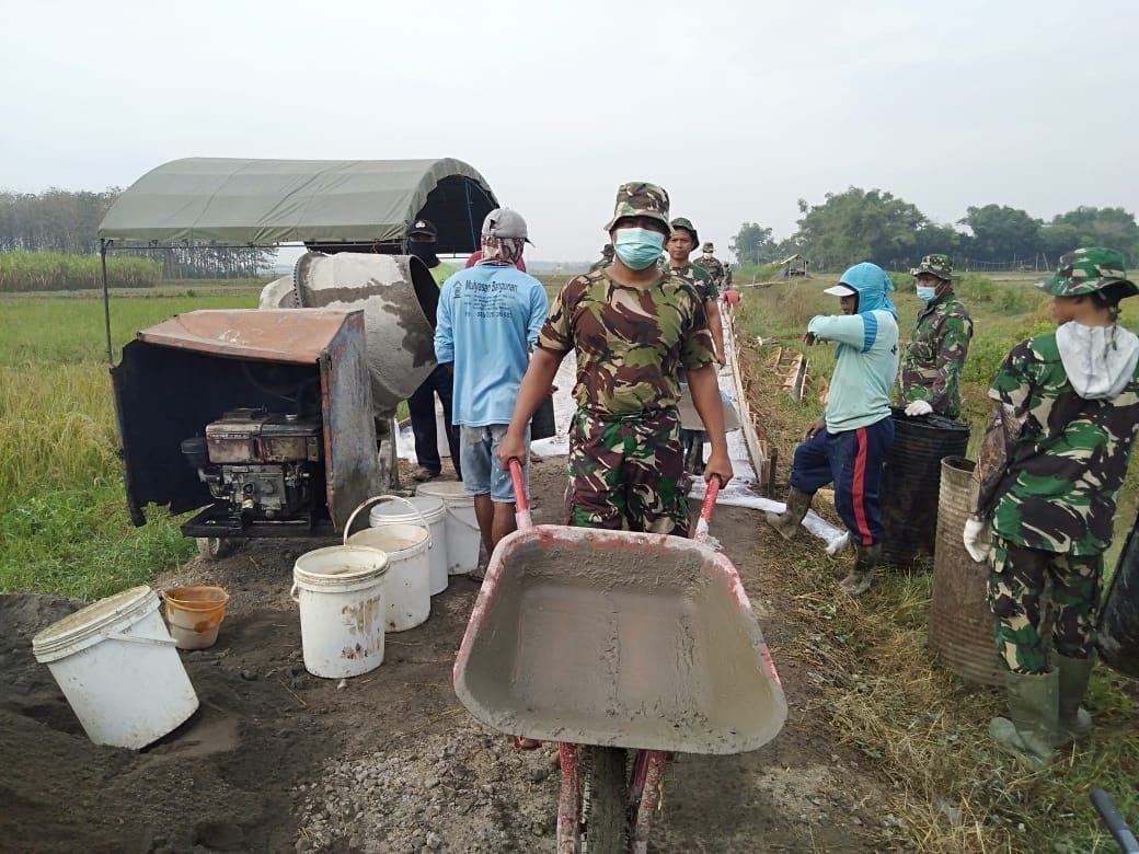 Pati – Serka Rohadi bersama Warga melaksanakan kegiatan kerja bakti pembuatan jalan rabat beton di Desa Tamansari, Kecamatan Jaken, Kabupaten Pati.