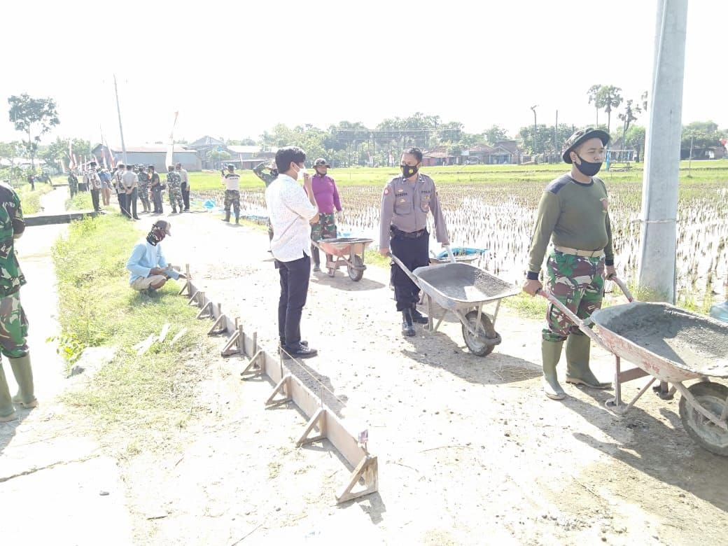 Dalam kegiatan pembangunan sasaran fisik pembuatan beton jalan terlihat jelas sinergitas TNI Polri dan masyarakat bahu membahu membangun sasaran fisik mensukseskan TMMD 111.