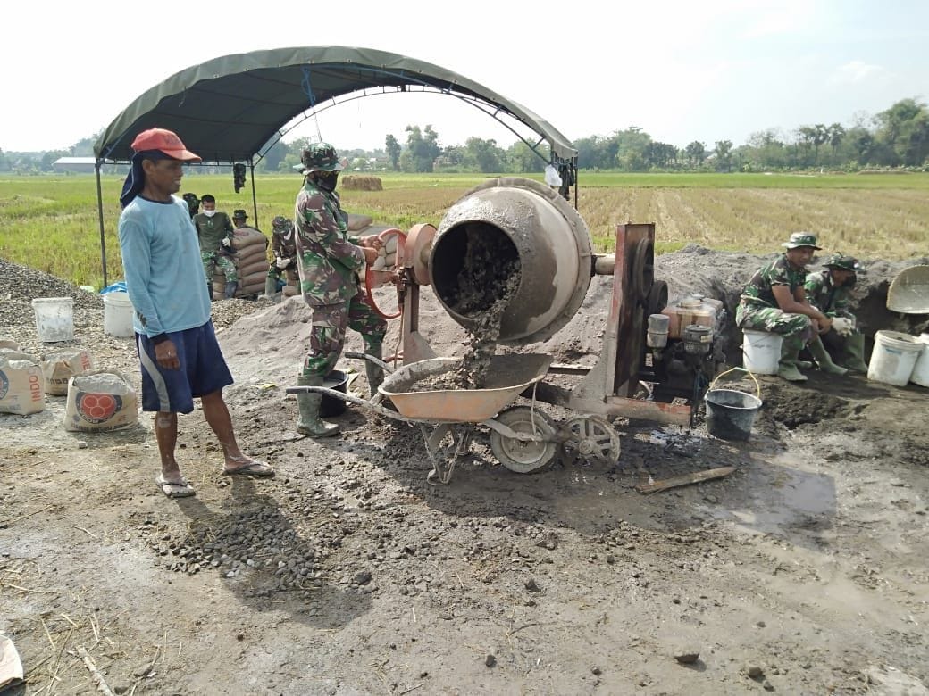 Pati – Serda Ferry, salah satu anggota Satgas TMMD Kodim 0718/Pati, dan merupakan salah satu operator Molen, mengatakan dengan adanya mesin molen satgas bersama warga sangat terbantu untuk proses pengerjaan pengecoran jalan.
