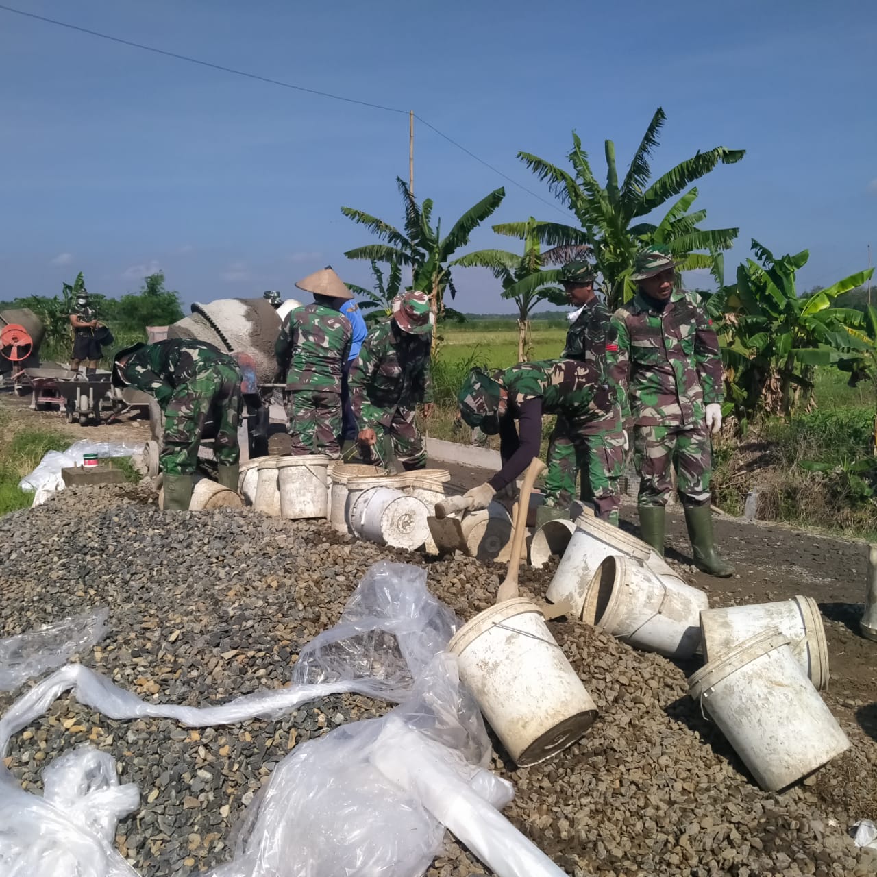 Misalnya saja yang terlihat dalam kegiatan pembuatan adukan, banyaknya tumpukan koral yang cepat habis setelah dikebut angkut oleh anggota satgas TMMD dalam pembuatan adukan.