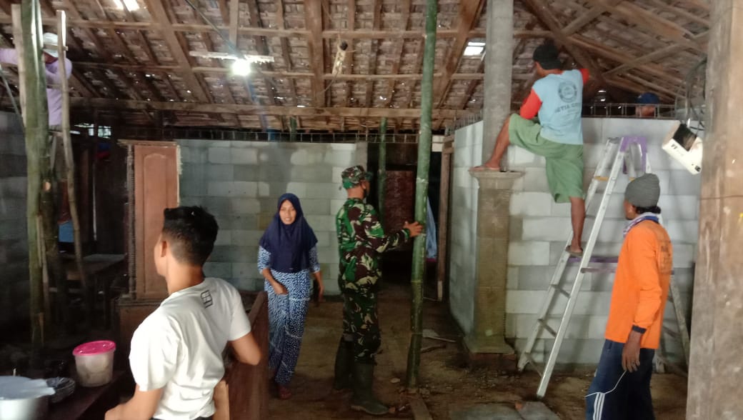 Pati – Pembuatan dinding untuk Rumah Tidak Layak Huni (RTLH) Satgas TNI Manunggal Membangun Desa (TMMD) Reguler ke-111 Kodim 0718/Pati di salah satu rumah penerima bantuan rehab RTLH, Sripi (70) warga Dusun Pandahan RT.04 RW.02, Desa Tamansari, Kecamatan Jaken, Kabupaten Pati.