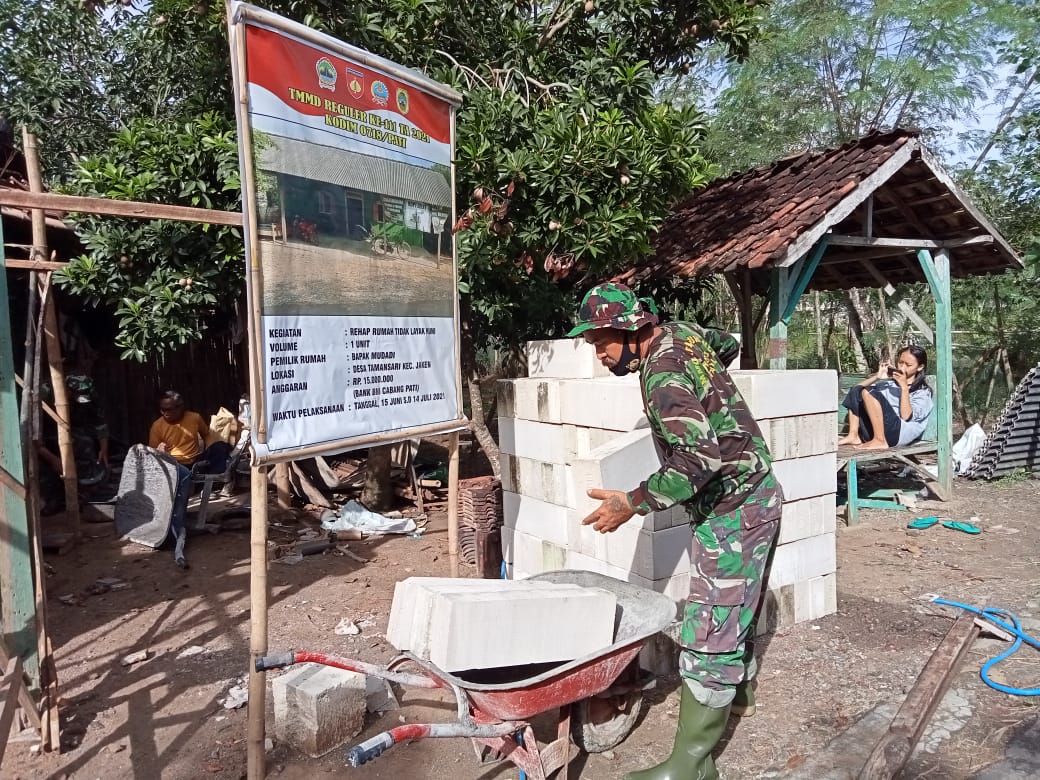 Dalam program TMMD Reguler 111 Kodim Pati di sasaran tambahan rehab rumah tidak layak huni (RTLH) sebanyak 16 unit banyak dipilih bata putih (hebel) untuk membangun rumah.