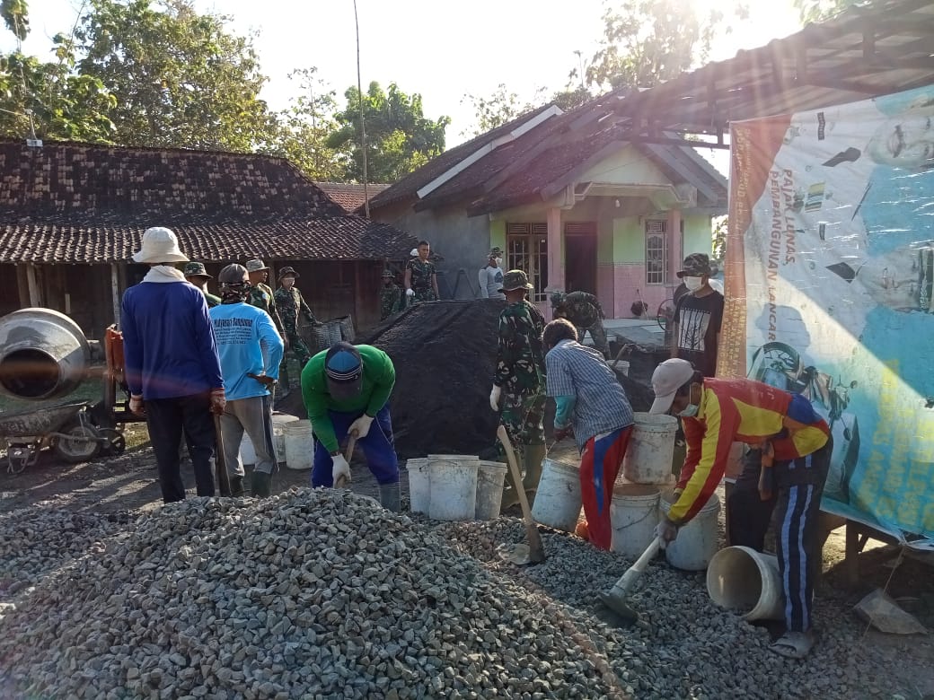 Pati – Kegiatan TMMD Reguler ke-111 Kodim 0719/Pati untuk sasaran pembangunan pengecoran jalan mencapai 95 % di Desa Tamansari, Kecamatan Jaken, Kabupaten Pati.