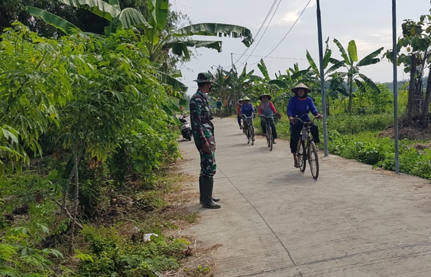 Seperti dilakukan Serda Sukarji anggota Satgas TMMD Reguler Kodim Pati sebelum melakukan aktivitas rutinnya di sasana fisik TMMD ia sempatkan memberikan himbauan kepada warga masyarakat yang akan berangkat ke sawah untuk tetap mematuhi protokol kesehatan Covid-19 dengan memakai masker