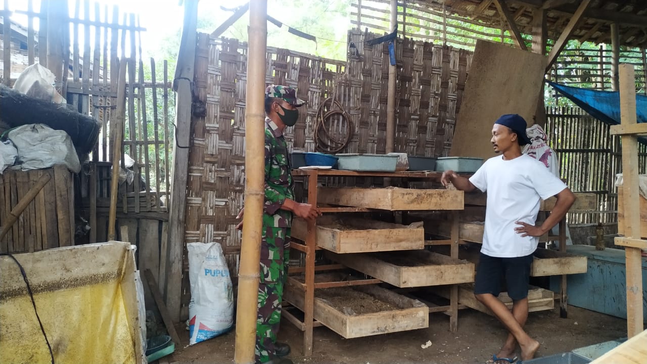 Memanfaatkan waktu luang pelaksanaan TMMD, melihat adanya seorang warga di desa tempat lokasi TMMD ada yang beternak puyuh, Serma Suyatno, bersama beberapa anggota satgas TMMD lainnya, menyempatkan anjangsana untuk melihat dan belajar cara beternak puyuh, Senin, (28/06/2021)