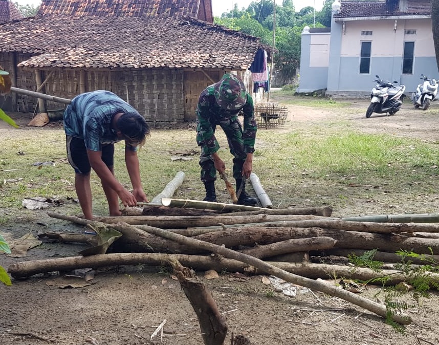 Sertu Sumarno yang sedang membantu membelah bambu mengatakan,