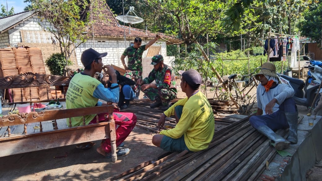 Serda Irfan disaat istirahat, sambil menikmati minuman dan hidangan tidak jarang warga dan anggota Satgas Pra TMMD terlibat komunikasi di sasaran pembuatan Rumah Tidak Layak Huni (RTLH), mereka memanfaatkan waktu istirahat untuk ngobrol dan berbagi pengalaman dengan warga setempat Sunaryo (47) salah satu warga Tamansari yang setiap harinya rajin membantu dalam pengerjaan pembuatan RTLH mengaku senang bisa bekerja bersama-sama dengan TNI.