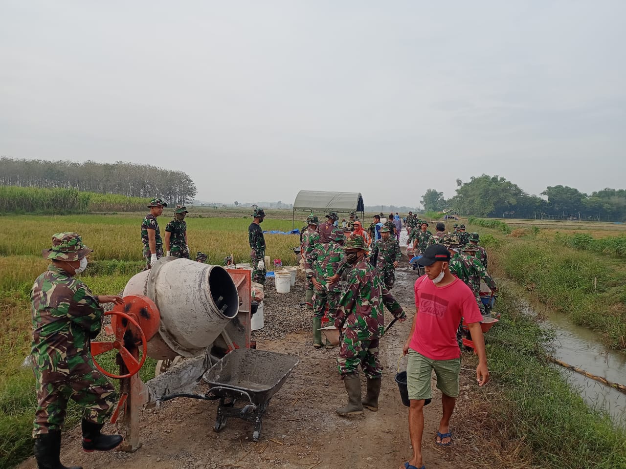 Dengan begitu lincah dan cekatannya, para anggota TNI satuan tugas TMMD menyelesaikan setiap pekerjaan yang dihadapi.