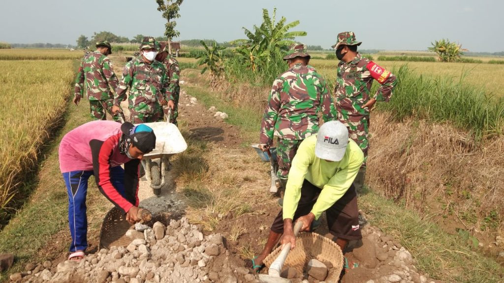 Pati – Dalam rangka TMMD Reguler ke 111, personel satgas TMMD Kodim 0718/Pati bersama – sama warga masyarakat Desa Tamansari bergotong royong mempersiapkan jalan yang akan dibetonisasi dalam program TMMD tahun ini.Rabu,(02/06/2021).