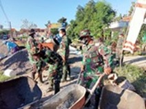 Pati –Para Anggota Satgas TMMD beserta masyarakat setempat dan dibantu dengan alat berat serta alat seadanya melaksanakan gotong royong untuk membuat jalan penghubung antar desa Tamansari dan Desa Sumberarum Kec. Jaken Kab.Pati .Supaya kelak hasilnya dapat dinikmati untuk hari ini esok dan anak cucu nantinya .Disaat seperti inilah sudah waktunya kita berkarya berkarya untuk bangsa dan negara