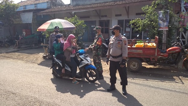 Tampak terlihat Pelda Puryadi bersama dua orang anggota Polsek Gunung Wungkal melaksanakan penghimbauan kepada warga untuk tetap mematuhi prokes yang ditetapkan pemerintahnya.