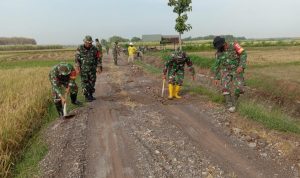 Pati – Kerjasama dan gotong royong antara TNI dan masyarakat terjalin erat dalam pelaksanaan TMMD 111 Kodim 0718 Pati di Desa Tamansari, Kecamatan Jaken, Kabupaten Pati.