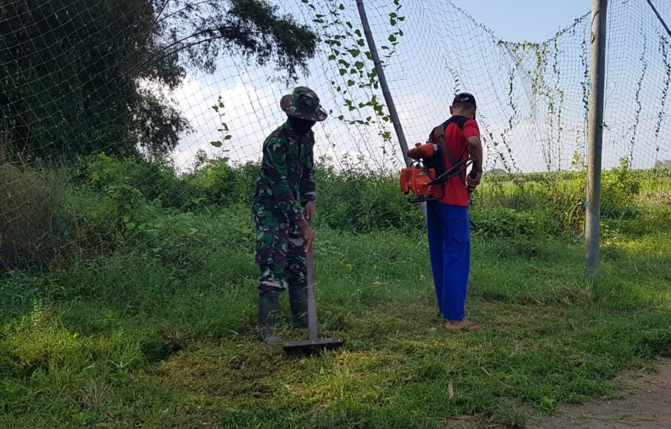 Pati – TNI identik dengan bersih dan rapi. Hal itu dibuktikan Sukarji anggota Satgas TMMD Reguler ke-111 Kodim 0718/Pati saat membantu salah satu warga Dukuh Pandahan, Desa Tamansari, Kecamatan Jaken, Kabupaten Pati, dalam kegiatan membersihkan rumput liar di sekitar lapangan volley dengan menggunakan mesin rumput, Selasa (29/6/2021).
