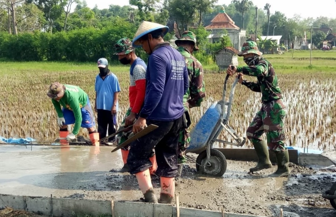 Pati-Betonisasi jalan sepanjang 1450 meter di desa Tamansari kecamatan Jaken kabupaten Pati dalam program TMMD Reguler 111 sudah