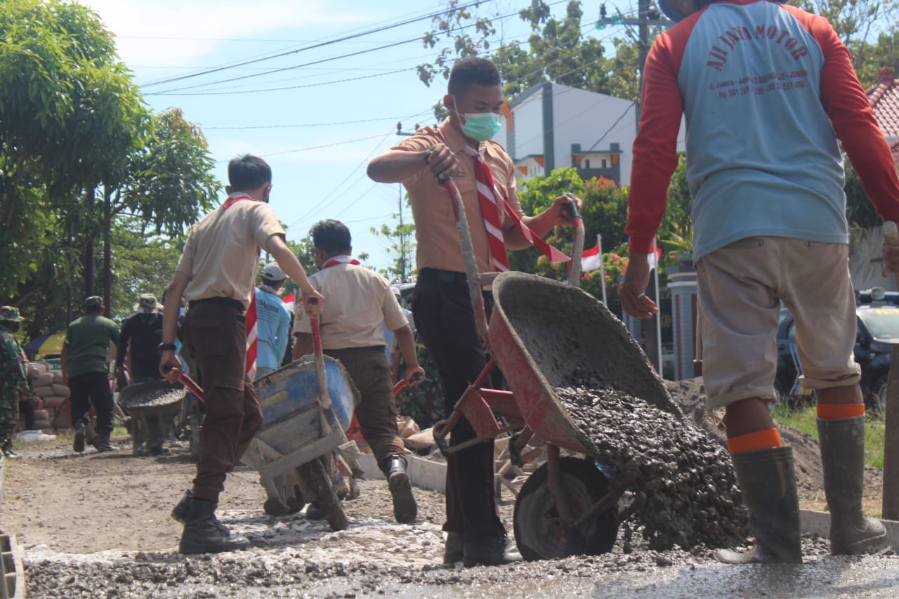 Dalam kegiatan Betonisasi tersebut gabungan Tim dari Pramuka menerjunkan sebanyak 20 orang untuk membantu betonisasi jalan dalam program TMMD Kodim Pati.