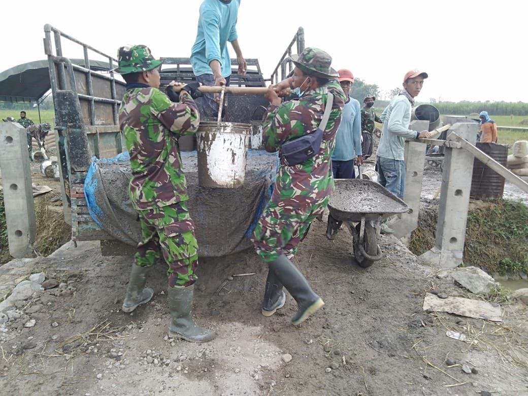PATI – Pekerjaan pengecoran jalan berjalan lancar, anggota Satgas dan warga masyarakat dusun kemiri melanjutkan pengecoran jalan di Desa Tamansari. Keadaan apapun mereka bekerja dengan semangat dan dapat bekerja sesuai target, namun mereka terkendala dengan material yang cukup jauh dari lokasi pengerjaan jalan.