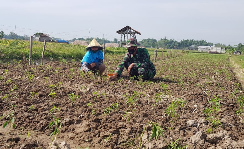 Seperti terlihat kali ini, dirinya sedang membantu Ibu Hartini (46) warga Dukuh Kemiri, Desa Tamansari, Kecamatan Jaken, Kabupaten Pati, yang sedang menyulam tanaman cabai yang mati di lahah kebun miliknya.