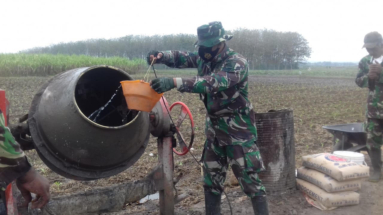 “Kebetulan saya sebelum masuk menjadi TNI dulu pernah bekerja di bangunan. Pernah mengoperasikan mesin molen sehingga sekarang sudah menjadi TNI bukan hal yang baru di gelaran TMMD ini. Saya secara khusus menangani mesin molen,” ungkap Serka Amino disela-sela kesibukannya bekerja di sasaran fisik pengecoran jalan.