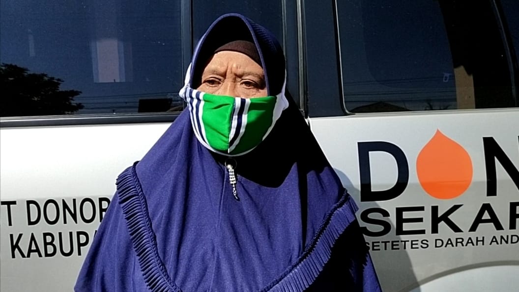 Salah satu relawan donor darah yang berhasil ditemui hari ini dalam kegaiatan donor darah di aula kecamatan Jaken dalam rangka program TMMD reguler 111 Kodim Pati adalah Rusmini (61) perwakilan dari PKK kecamatan Jaken.