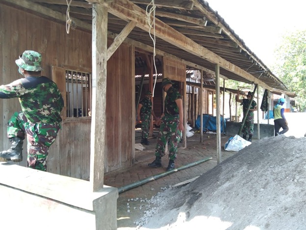 PATI – Bedah Rumah Tidak Layak Huni (RTLH) milik ibu Sarbini (57), Ini dikerjakan oleh anggota Satgas TNI Manunggal Membangun Desa(TMMD) Ke -111 Kodim 0718/Pati bersama warga dalam kebersamaan dan gotong royong.