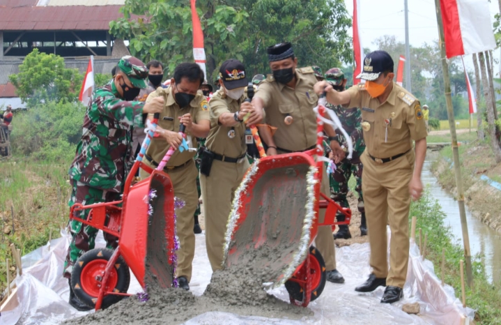 Pati-Bupati Pati Haryanto resmi membuka TMMD (Tentara Manunggal Masuk Desa) Reguler ke – 111 tahun 2021 yang bertempat di Desa Tamansari Kecamatan Jaken Kabupaten Pati, Selasa (15/6/2021).