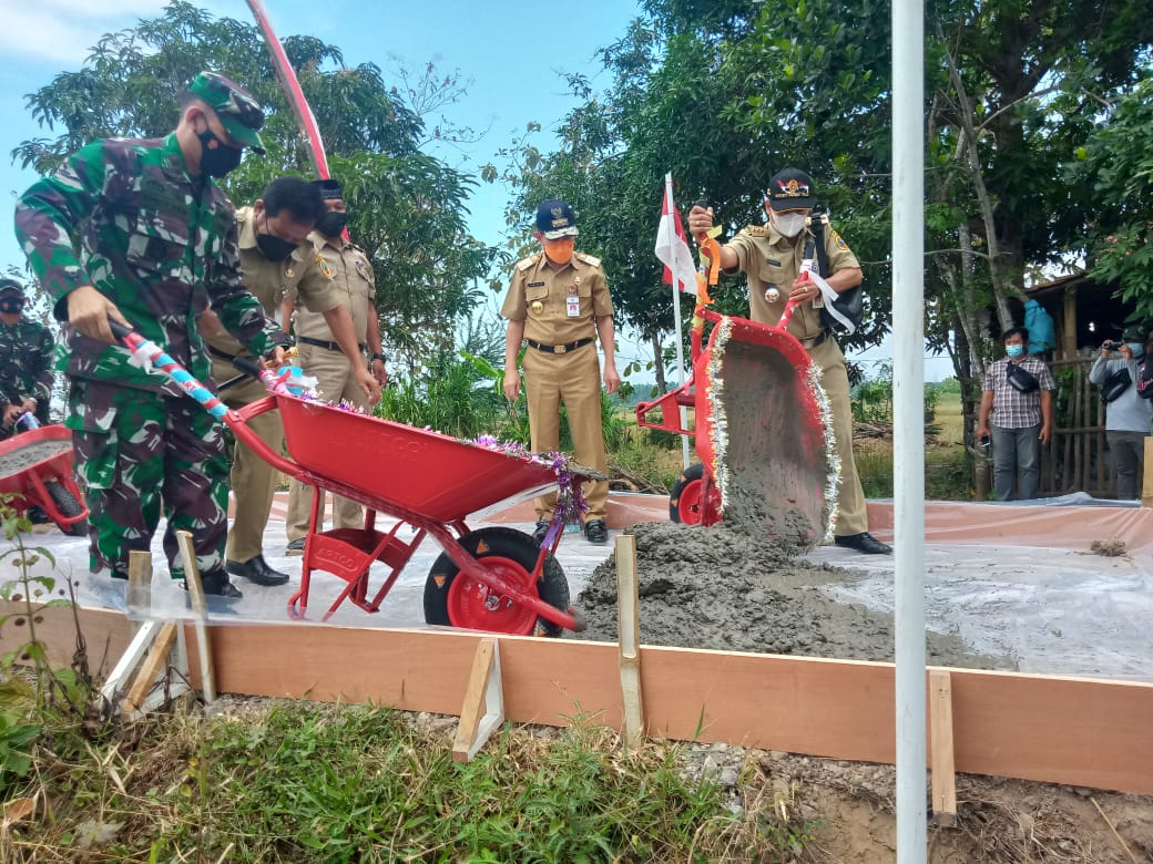 Pati – Kegiatan secara simbolis pagi tadi mengawali kegiatan upacara pembukaan TNI manunggal membangun desa (TMMD) regular 111 Tahun 2021, rombongan forkopimda Pati kompak menuangkan adonan beton di titik nol kilometer.