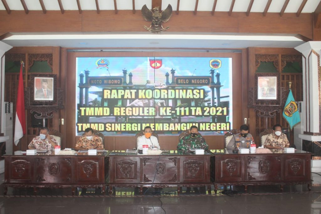 PATI – Untuk mematangkan persiapan pelaksanaan TNI Manunggal Membangun Desa (TMMD) ke-111 di wilayah Komando Distrik Militer (Kodim) 0718/Pati, dilaksanakan rapat koordinasi (rakor) di Pendopo Setda Kabupaten Pati, Kabupaten Pati. Rencananya, pelaksanaan TMMD kali ini akan direaliasikan di Desa Tamansari, Kecamatan Jaken, Kabupaten Pati.