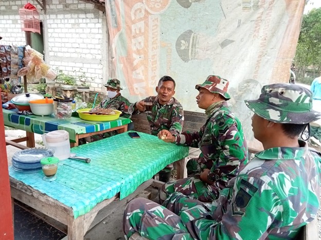 Seperti yang dilakukan Sertu Muhamad, dengan candaan khasnya ia bercanda dengan kawannya yang sedang berbincang saat istirahat di warung kopi.