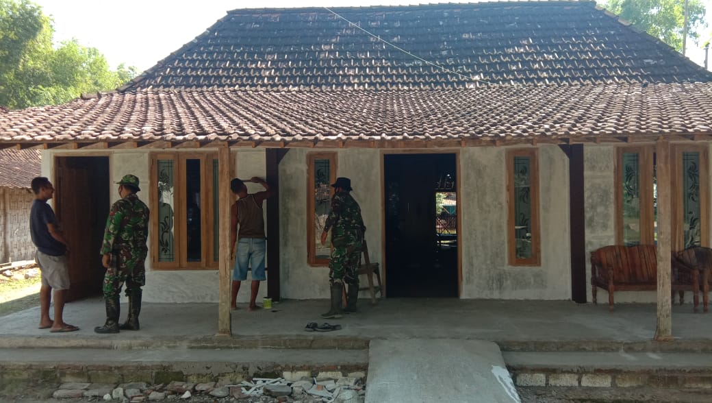 Pati – Pekerjaan rehab Rumah Tidak Layak Huni (RTLH) program TNI Manunggal Membangun Desa (TMMD) Reguler Ke-111 TA.2021 Kodim 0718/Pati, milik Sukur (47), warga Dusun Pandahan Rt.03 Rw.02, Desa Tamansari, Kecamatan Jaken, Kabupaten Pati, sudah mencapai tahap finishing proses pengecatan dasar dinding rumah. Selasa (6/7/2021)