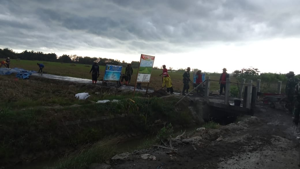“Saya melihat awan hitam pekat tanda akan turun hujan namun ternyata hanya gerimis, alhamdulillah tidak disertai adanya petir, karena pekerjaan kita di jalan tengah-tengah sawah jadi sangat rawan bila ada petir. Untuk itu kita tetap jaga faktor keselamatan dan keamanan selama bekerja,” ungkap Serka Joko dilokasi pekerjaan.