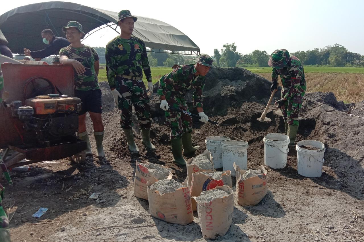 Danramil 16/Jaken Kapten Kav Budi Karyadi mengatakan,”Untuk pembangunan sasaran fisik pada pengecoran jalan penghubung di Desa Tamansari ini akan lancar saja, asalkan stok material tercukupi dan yang paling penting adalah tidak sedang turun hujan karena pengecoran akan terhambat dengan cuaca hujan, mau tidak mau akan dihentikan terlebih dahulu,”ungkapnya.