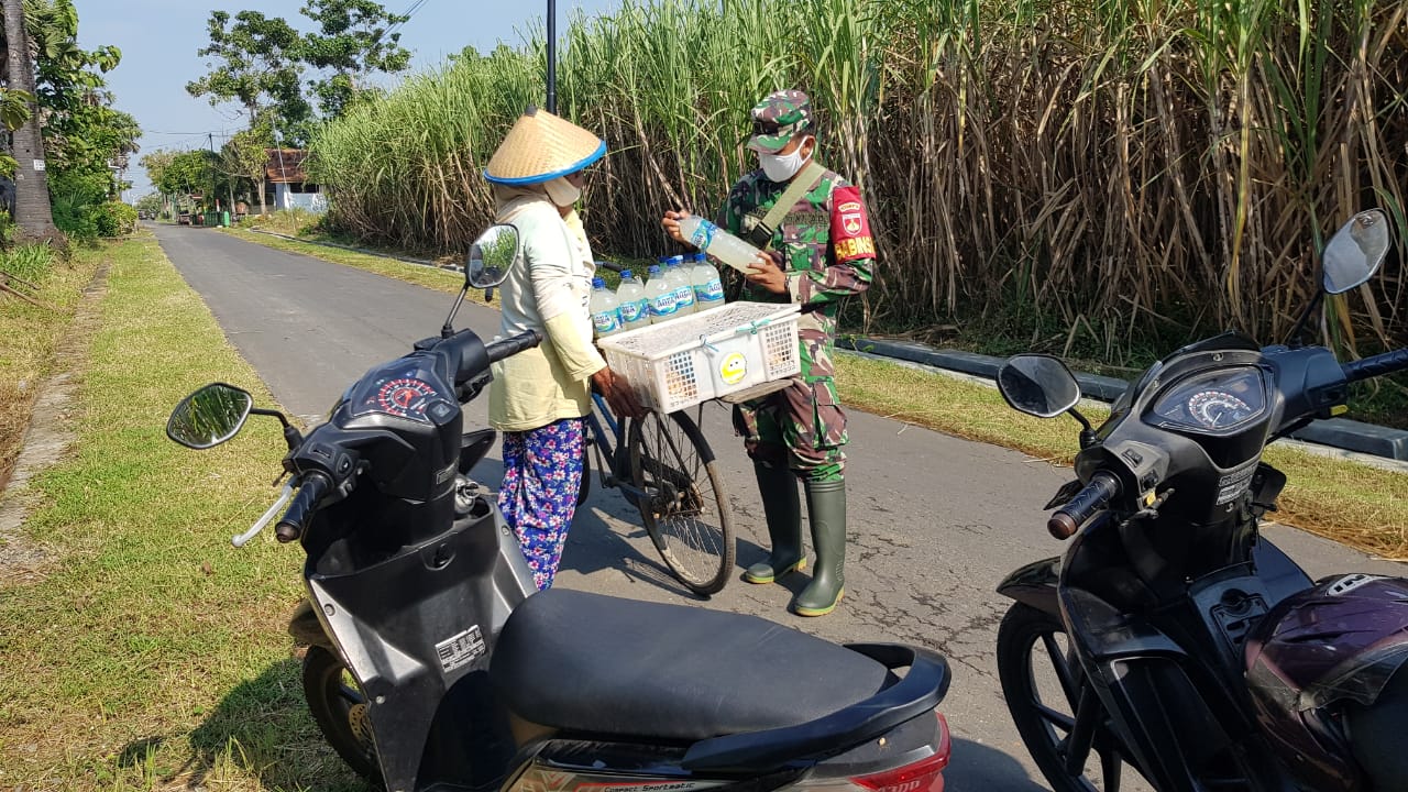 Sanipah (43) penjual legen dan buah siwalan yang biasa menjajakan dengan sepeda ontel, siang ini barang dagangannya habis terjual karena anggota satgas pra TMMD memborong dagangannya, “Alhamdulillah terimakasih pak TNI saya sangat terbantu karena sudah dilarisi jualan hari ini, ” katanya Kamis (10/06/2021).