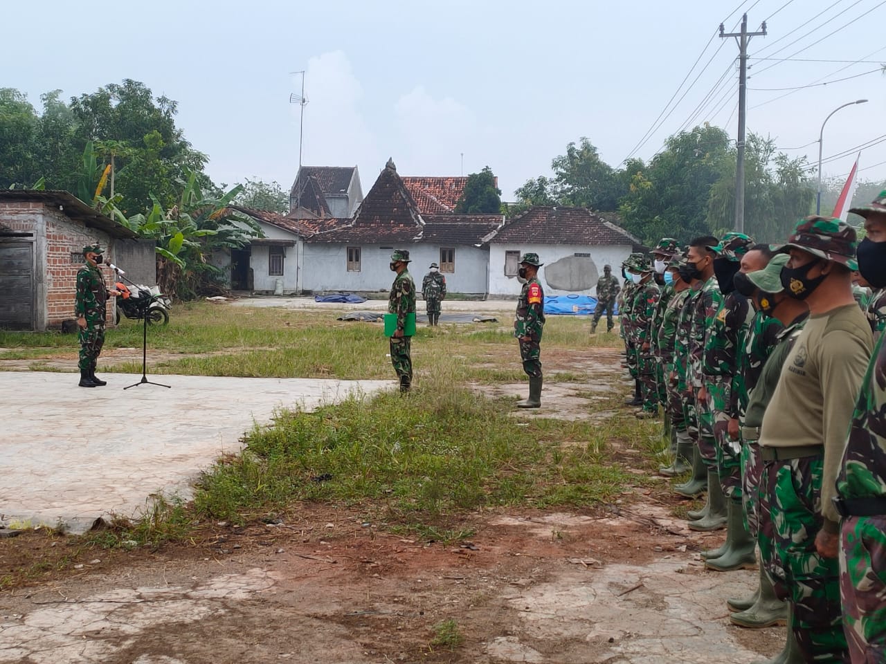Pati – Satgas TMMD Reguler Ke-111 Kodim 0718/Pati berkumpul di halaman penggilingan padi Desa Tamansari yang dijadikan sebagai tempat berlangsungnya apel pagi. Pada hari ini Dandim 0718/Pati Letkol Czi Adi Ilham Zamani SE,M.I.Pol selaku Dansatgas TMMD sebagai pengambil apel.