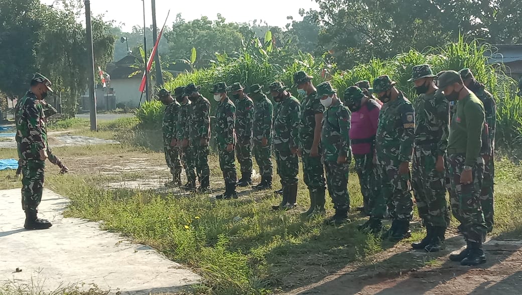 Saat mengambil apel, Danramil 16-0718/Pati Kapten Kav Budi Karyadi, SE memerintahkan seluruh anggota Satgas TMMD untuk melakukan kegiatan di sasaran fisik dengan penuh semangat dan tidak lupa menjaga kesehatan selama mengikuti Satgas TMMD Reguler Ke-111 ini.