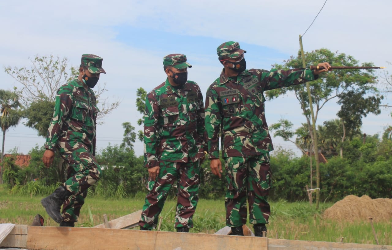 Pati-Didampingi Dansatgas TMMD Reguler 111 Kodim Pati Komandan Korem 073/Mkt Kolonel Arm Putranto Gatot Srihandoyo melihat langsung pekerjaan betonisasi jalan di desa Tamansari kecamatan Jaken.Kamis,(01/07/2021).