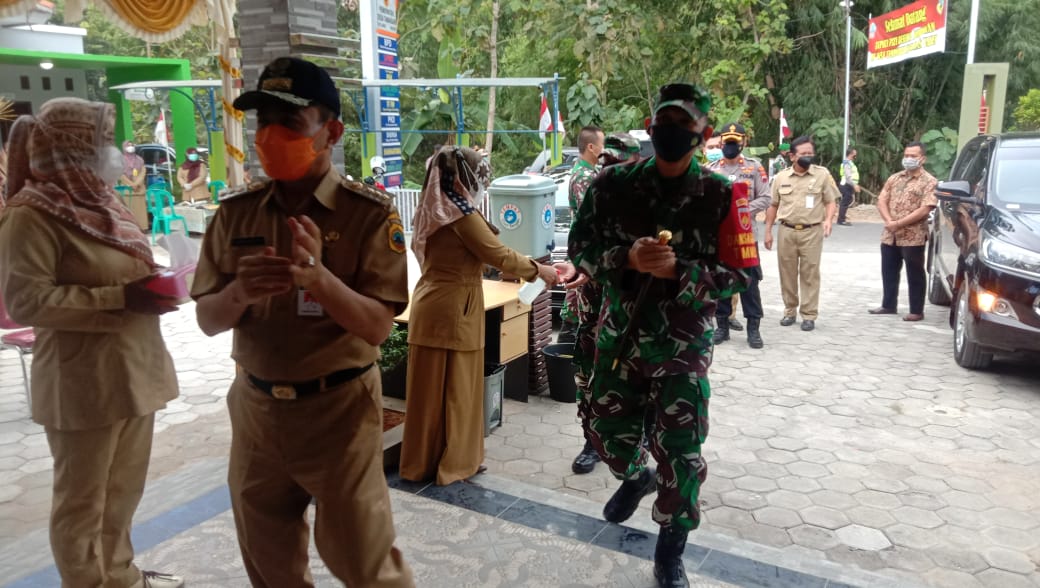 Pati – Kedatangan rombongan Bupati Pati bersama Dandim Pati dan wakapolres Pati disambut oleh kepala desa Tamansari bersama perangkat desa dalam rangka upacara pembukaan TMMD Reg.111 Kodim Pati tahun 2021.