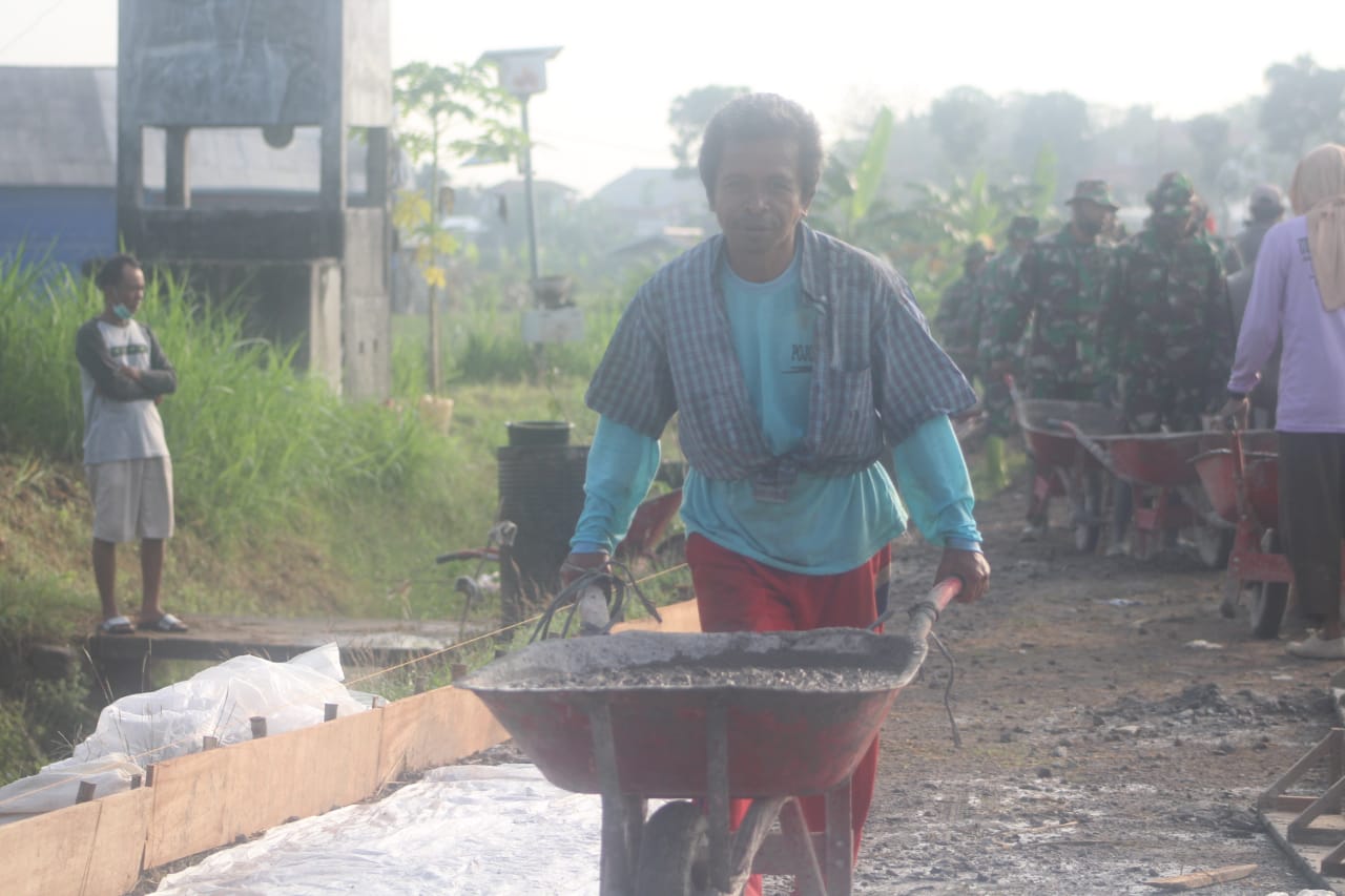 “Tiap hari saya ikut ngecor jalan bersama bapak TNI, biar jalan desa ini menjadi bagus,menuju ke sawah biar nggak repot,”ungkapnya.