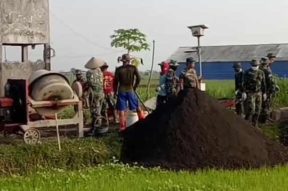 Sertu Jumroni, Babinsa Tamansari menjelaskan, lahan sawah milik Bapak Sungkono bersinggungan langsung dengan jalan yang akan dilaksanakan pengecoran. karena tidak ada tempat kosong untuk tempat pasir, terpaksa pasir diturunkan dipinggir lahan sawah milik Sungkono yang ada tanaman kacang hijaunya. Hal ini dilakukan agar material untuk pengecoran tidak telat dan mempercepat pelangsiran materal ke mesin molen tidak terlalu jauh sehingga pekerjaan menjadi semakin lancar.