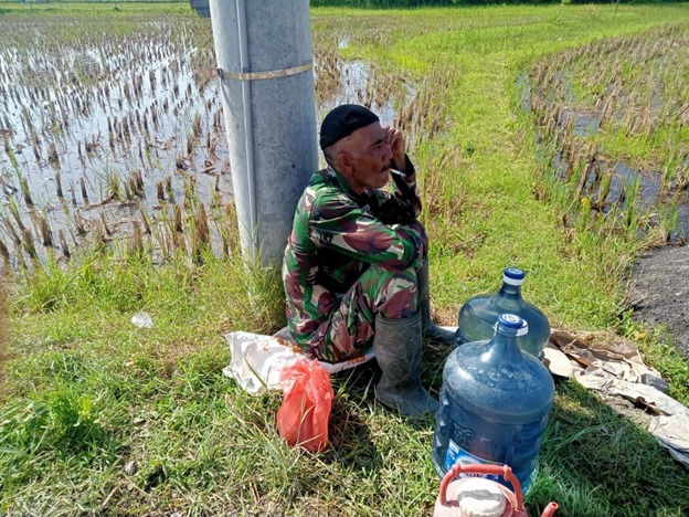 Di sela – sela aktivitas rutin tersebut, anggota satgas TMMD menyempatkan waktu untuk istirahat, dan agar saat akan bekerja kembali tidak harus menempuh perjalan jauh, salah satu anggota satgas TMMD, Sertu Deden memilih istirahat berteduh dibawah tiang Listrik. Hal itu karena minimnya tempat berteduh di lokasi rabat beton tersebut.
