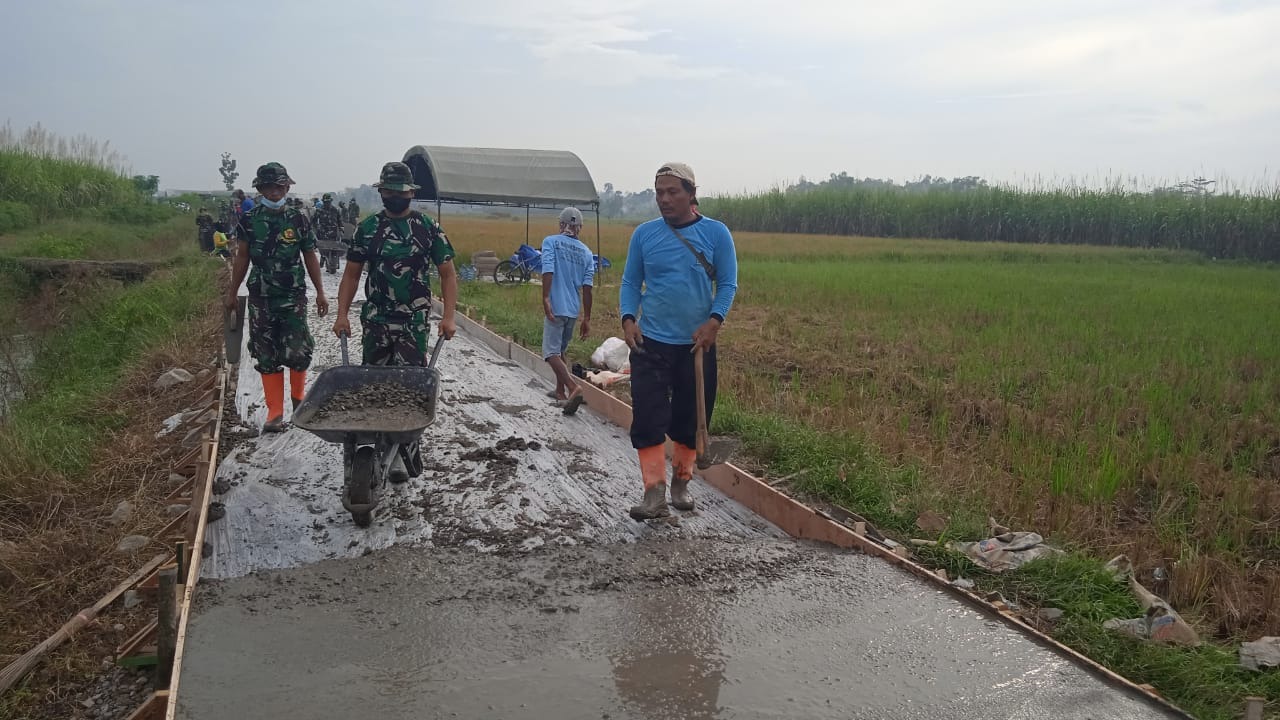 “Sebagai Anggota Satgas TMMD tentunya beserta Masyarakat akan selalu melaksanakan gotong royong untuk proses pengerjaan pengecoran sampai dengan selesai,”ujar Puryono”.