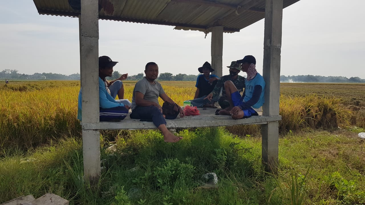 Tampak warga bersama anggota Koramil Jaken Kopda Tahan Utomo dimana saat itu sedang berkeliling diwilayah binaannya. Mereka terlihat duduk santai dan sambil berbincang-bincang ringan bercerita penuh canda tawa, Sabtu (17/7/2021).