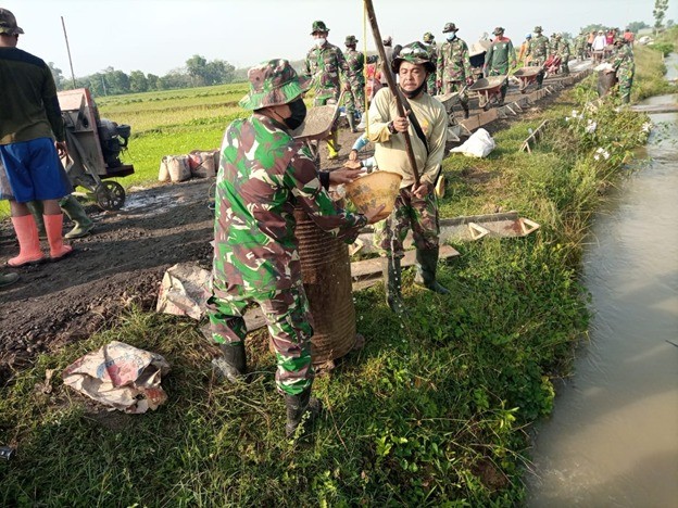 PATI – Waktu terus berjalan, tidak terasa pelaksanaan TNI Manunggal Membangun Desa (TMMD) Reg 111 tahun 2021 Kodim 0718/Pati di Desa Tamansari, Kecamatan Jaken, Kabupaten Pati, Jawa Tengah, sudah memasuki pekan ketiga. Sasaran fisik rehab Rumah Tidak Layak Huni (RTLH) dan pengecoran jalan menjadi fokus utama.