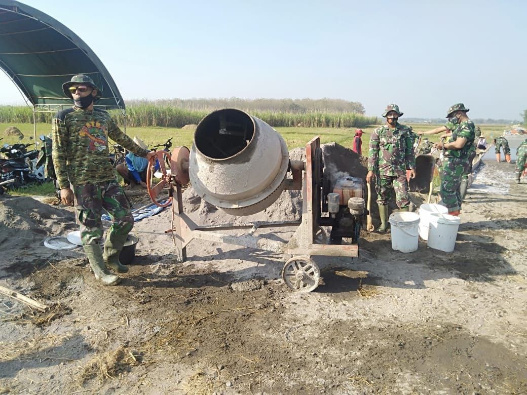 PATI – “Dengan adanya mesin molen, warga dan anggota satgas TMMD tetap semangat melanjutkan pengecoran jalan yang menghubungkan antara DesaTamansari dan Desa Sumberarum, pekerjaan anggota satgas bersama warga bisa cepat terselesaikan,” Ucap Serda Joko umbar.