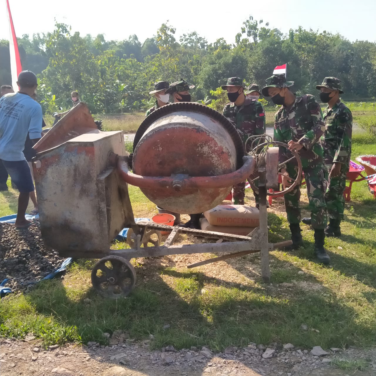 Pati- Semenjak hari kemarin setelah dibukanya secara resmi pelaksanaan TMMD, suasana di Desa Tamansari tidak seperti biasanya, deruan mesin molen terdengar mengalahkan suara burung yang biasanya bernyanyi dipagi hari.