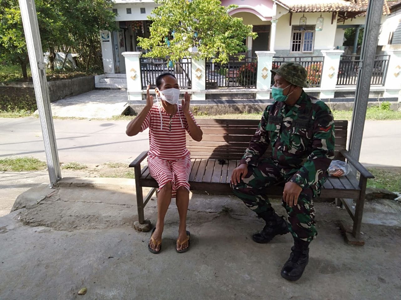 menindaklanjuti surat telegram dari Komando atas untuk pencegahan dan meminimalisir penyebaran virus corona dilokasi TMMD Reguler Ke 111 Tamansari, salah satu anggota satgas TMMD Membagikan Masker dan mengedukasi kepada masyarakat untuk selalu memakai masker menjaga jarak dan menghindari kerumunan untuk mencegah penyebaran virus corona 19,