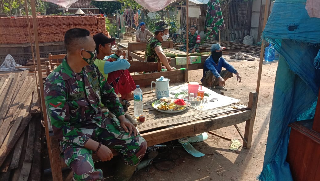 Disela Istirahat, Satgas TMMD Reg.111 Kodim Pati Juga Menyelipkan Himbauan Protokol Kesehatan