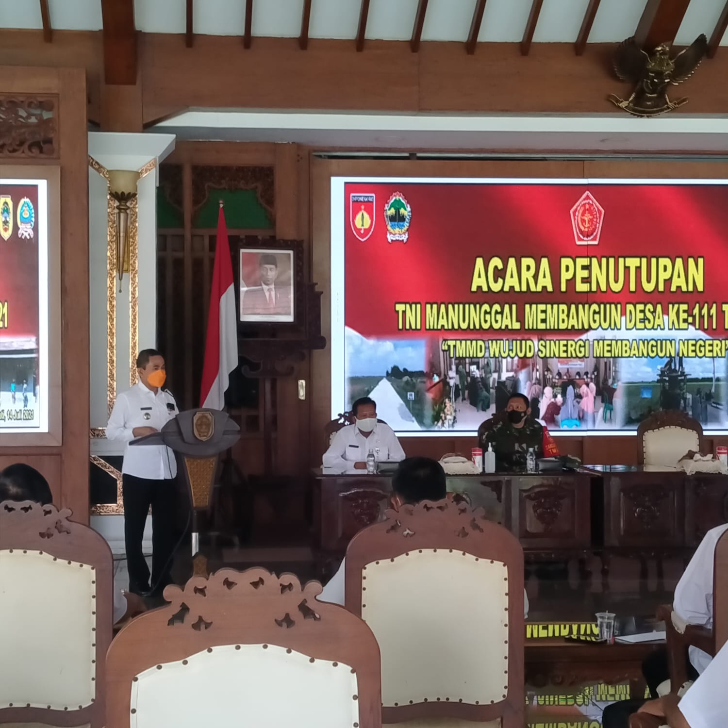 Ditandai dengan penyerahan hasil TMMD dari Komandan Satgas TMMD Reguler Ke 111 tahun 2021 kepada Bupati Pati, Haryanto. Penyerahan hasil TMMD tersebut, dilakukan di Aula Kantor Pemerintahan Kabupaten Pati.